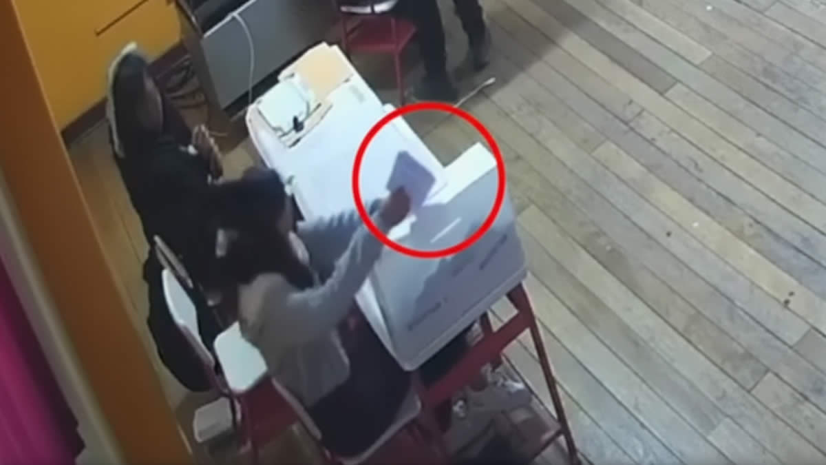 Luego, otro extracto muestra a quien sería el presidente de mesa levantarse de su silla, dar indicaciones a los otros miembros, luego una persona que está en la puerta y que habría actuado como “campana”, le dice algo; este regresa a la mesa mientras una de las integrantes alista un paquete de cédulas, le entrega y de forma rápida las introduce al ánfora.