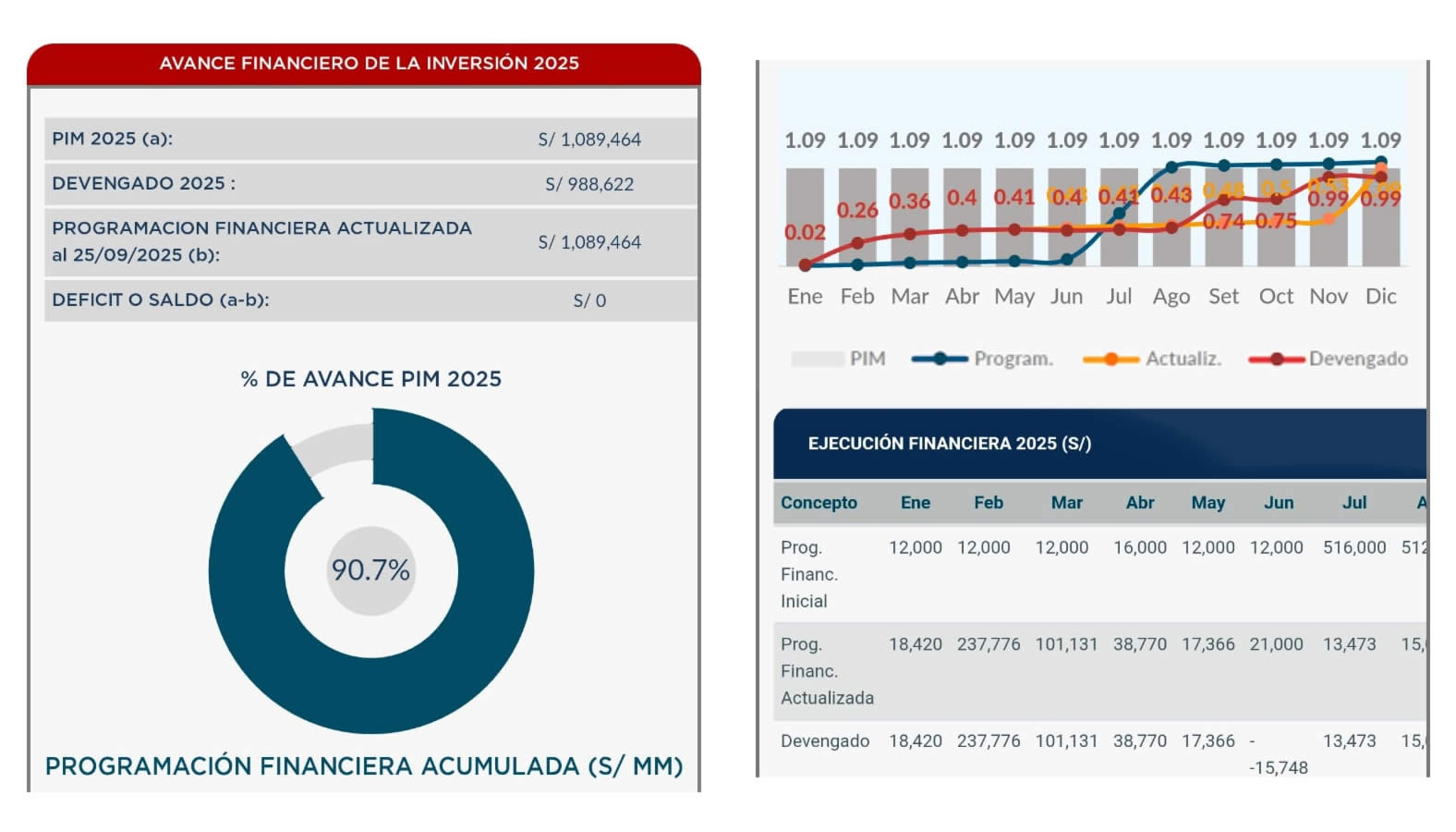 Se debe indicar que la inversión total del proyecto asciende a S/.139 millones, pero solo S/ 91 millones se ejecutaron, dejando un desbalance crítico entre el avance físico y financiero.