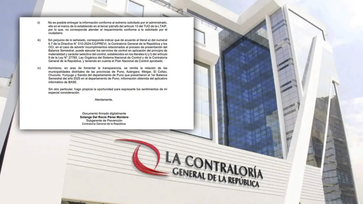 La Contraloría General de la República (CGR) rechazó entregar información sobre regidores de las municipalidades distritales de la región de Puno que no reportaron sus balances semestrales del primer semestre 2025, según respondió a Pachamama radio. El organismo señaló que no está obligado a crear información que no posee en su sistema BASE.